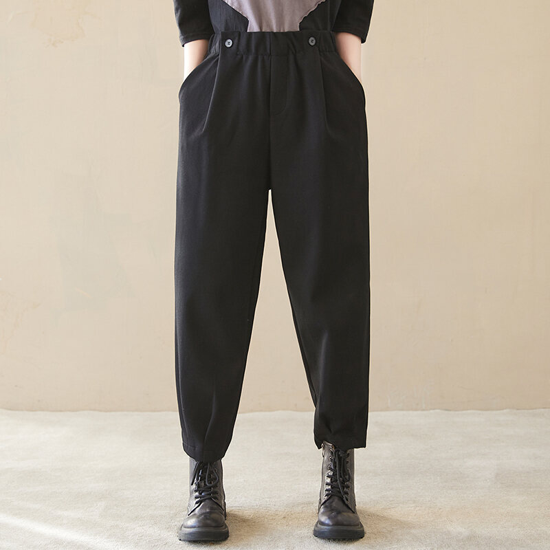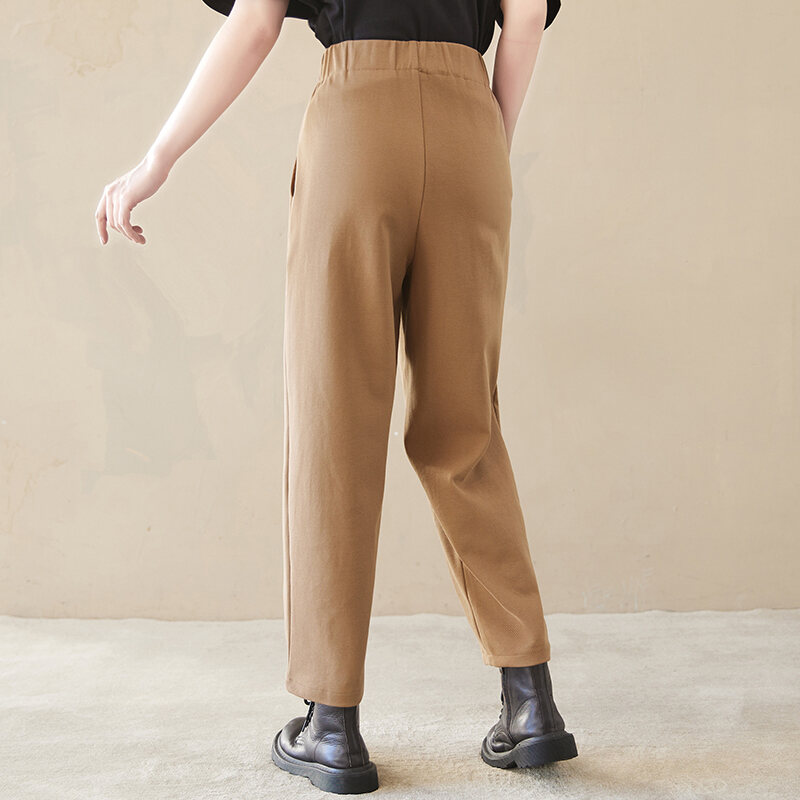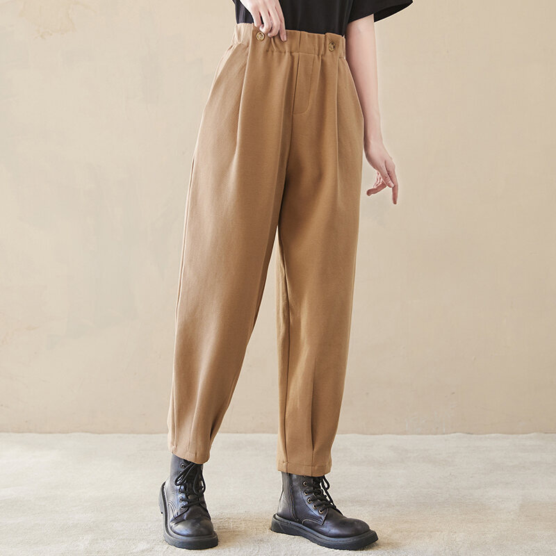 2023 Spring New Cotton and Linen Large Size Loose Harem Pants Women's Casual All-Match High Waist Slimming Tappered Cropped Pants