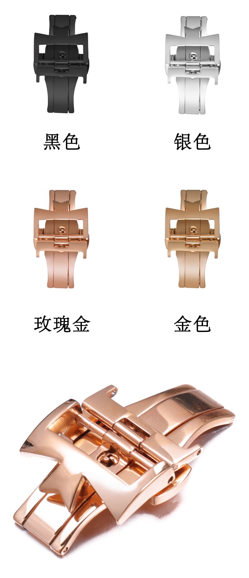 ◆ Swiss nabe black silver gold rose gold double press butterfly buckle buckle Vacheron Constantin leather strap buckle 18-22mm