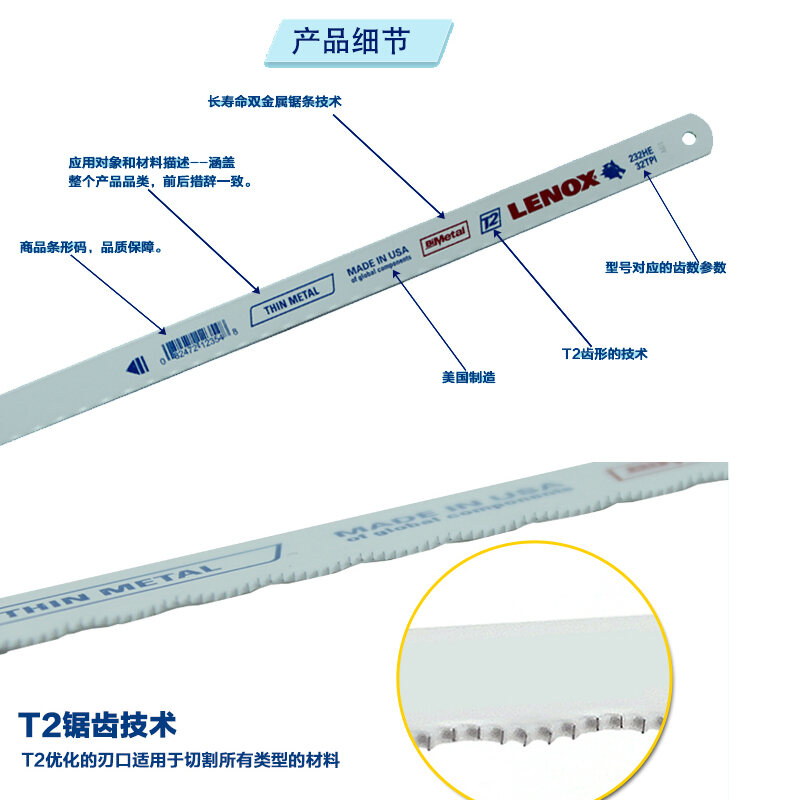 US Imported Handmade Saw Blade LENOX LENOX Double Metal Hacksaw Blade 12-Inch Saw Frame Metal Cutting