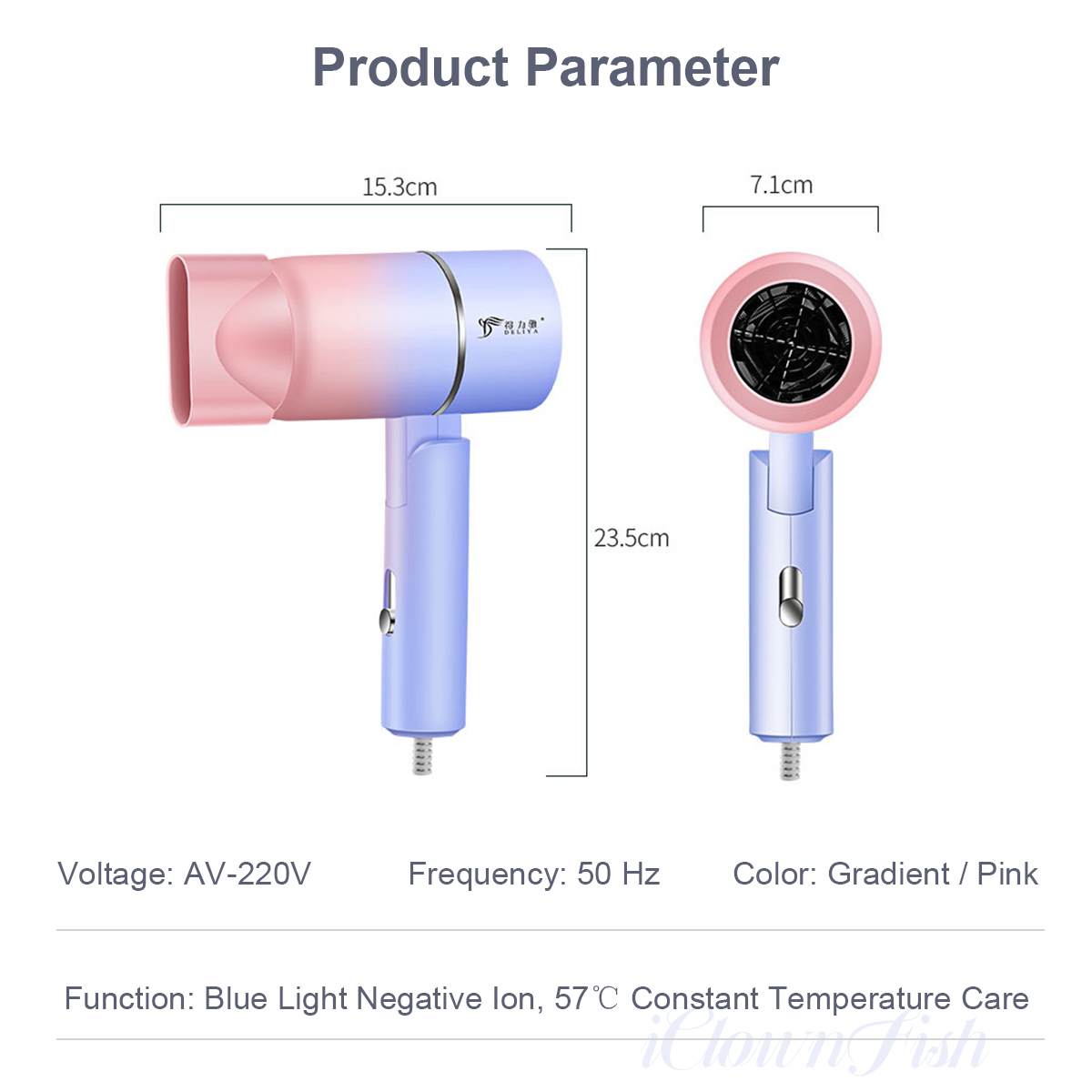 DELIYA Foldable Mini Hair Dryer Blue light Negative ion Hairdryer 1000W Fast Dry Strong Wind 3 Modes Hair Blower