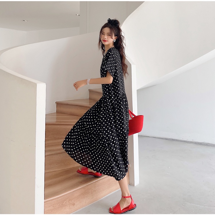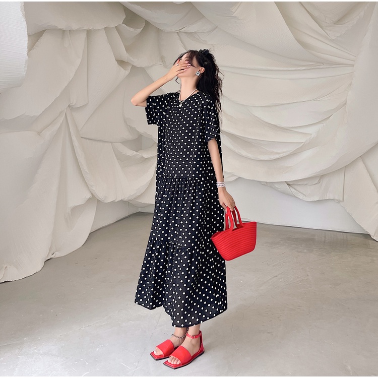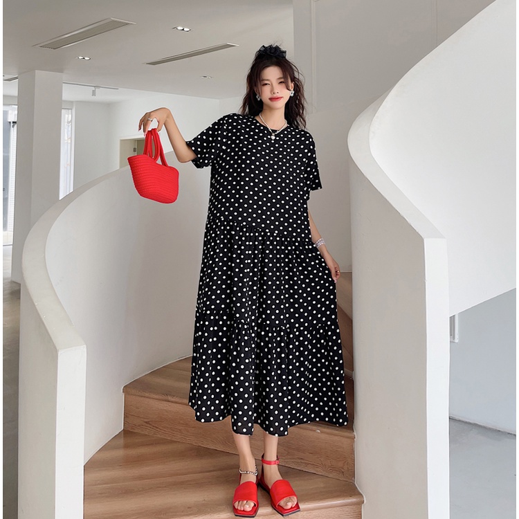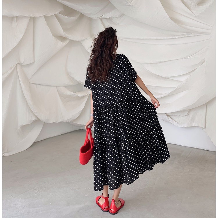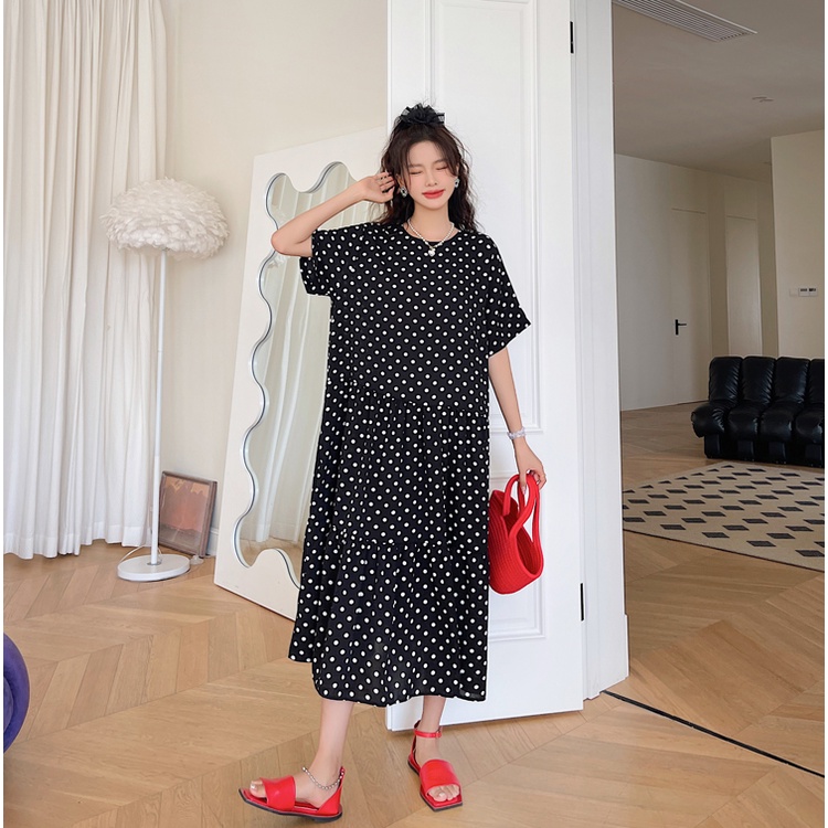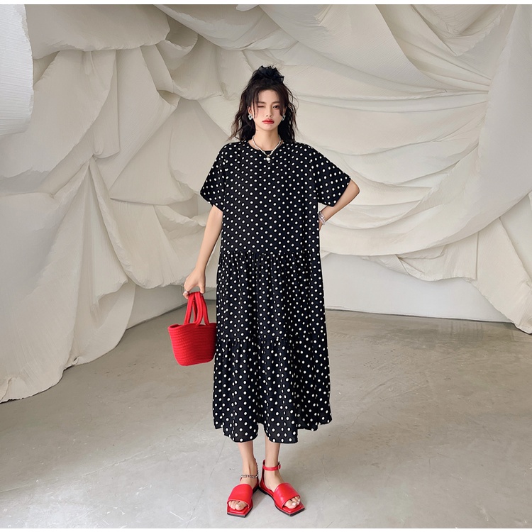 Oladivi Plus Size Women Short Sleeve Fashion Polk Dot Printed Dress 2023 Summer New Casual Loose Oversized Midi Dresses Vintage Ladies Big Tunic Robe L XL XXL 3XL 4XL 9871 F054