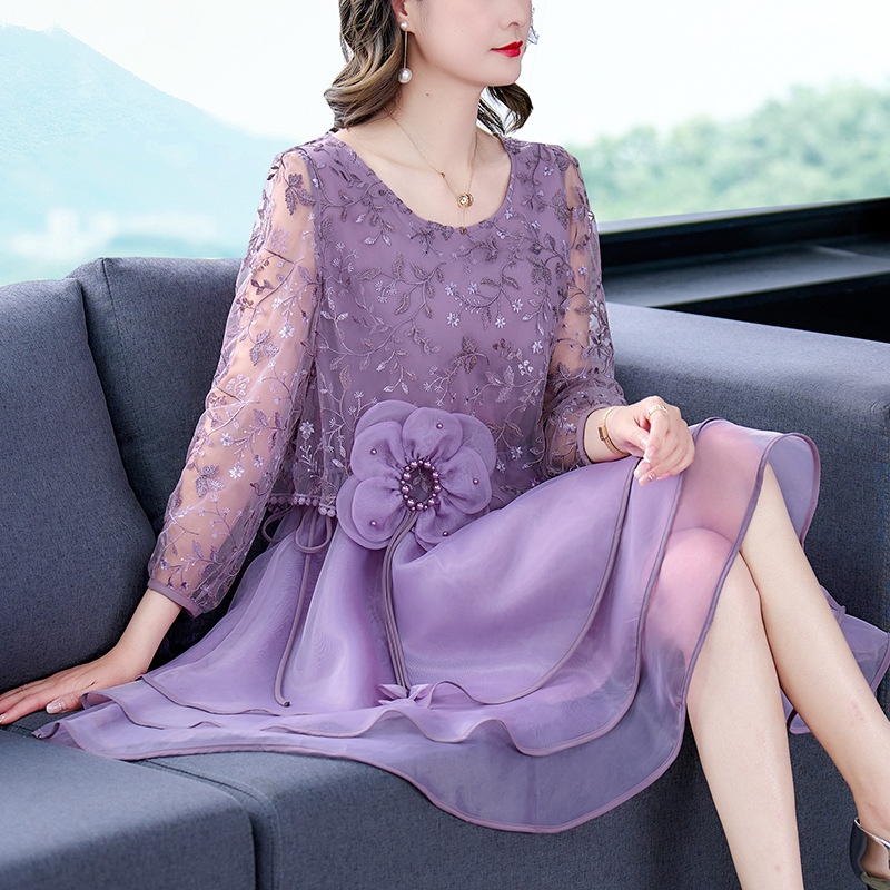 rge size women's heavy dustry mesh embrdery dress summer 23 new m high-end foreign style age-reducg dress wholesale C423┋◈✟
