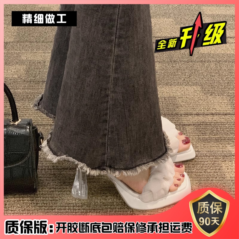 Jiabu fake women's slippers go out in the summer of 2023 new fashion all-match small high-heeled fairy style flip-flops