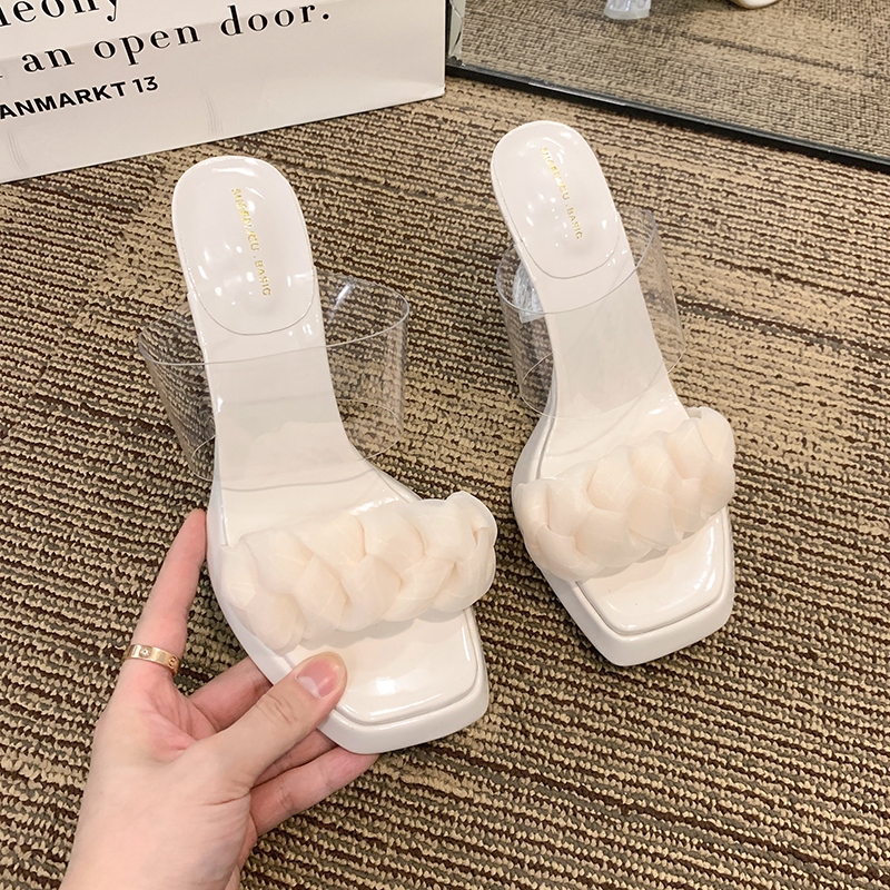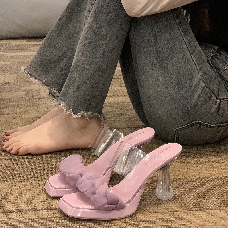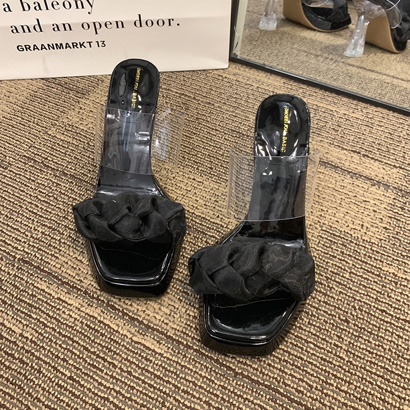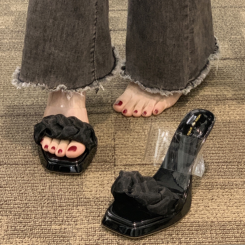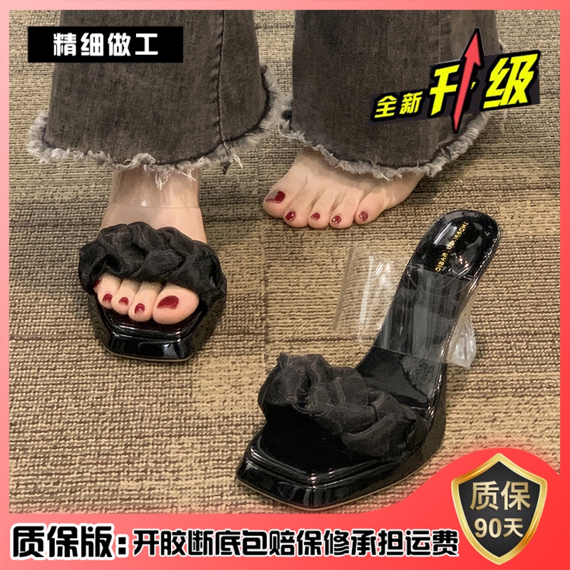 2023 Women's High-Heeled Slippers New Dress Fairy Style Sandals Women's Rhinestone Stiletto Square Toe High Heels