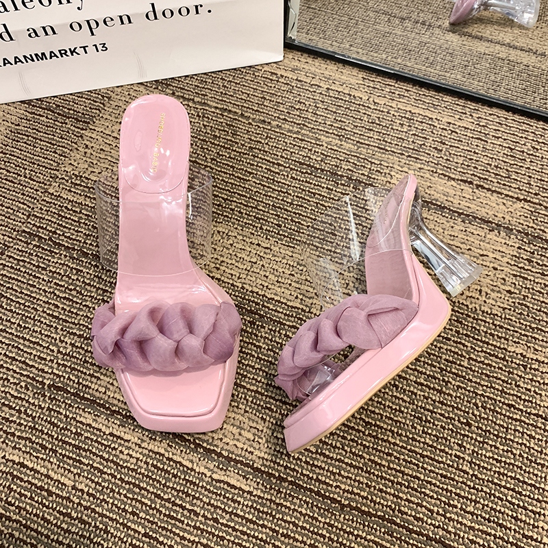Internet Celebrity Fairy Style Furry Slippers for Women Summer Outdoor Wear 2023 New Crystal Heel Chunky Heel High Heel Slippers