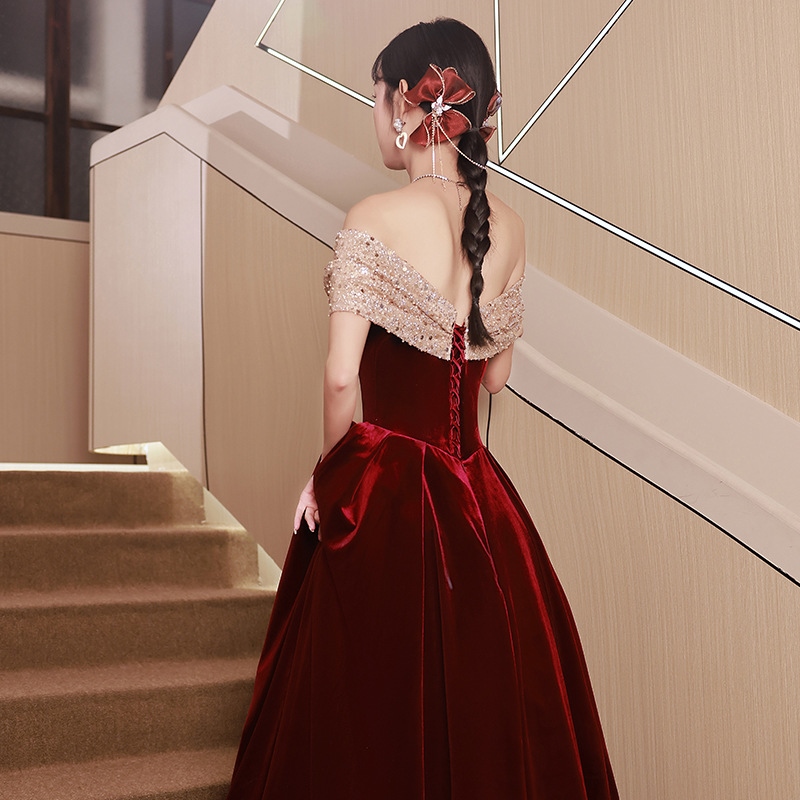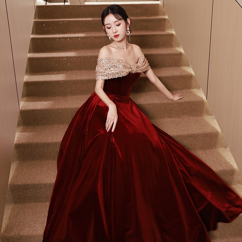st dress bride 23 new summer we red one-shoulder high-end engagement slim dress female banquet temperament A425✼❁❖