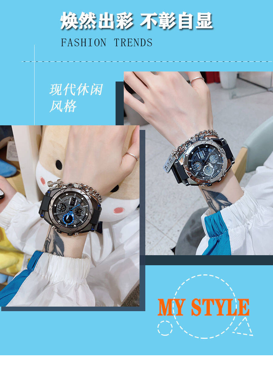 Watch men's high-end handsome black technology high school college generator waterproof trend sports multi-functional women's watch