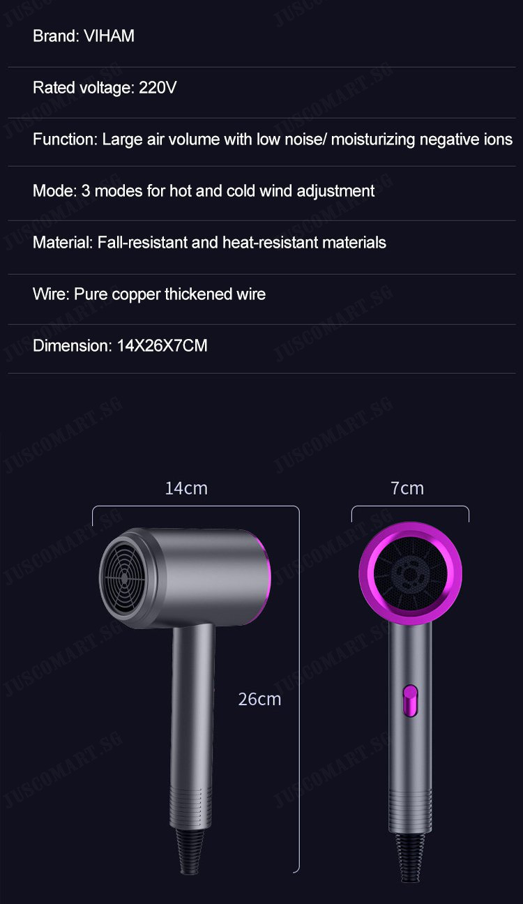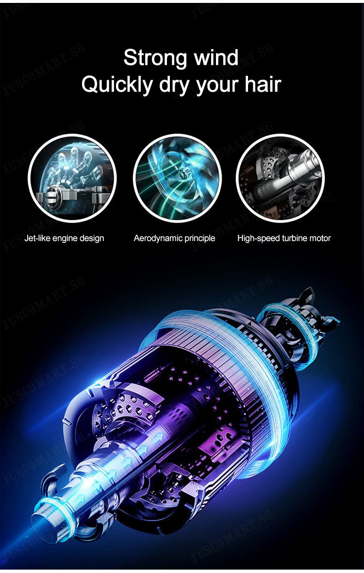 juscomart Blue light high efficiency hair dryer with low noise