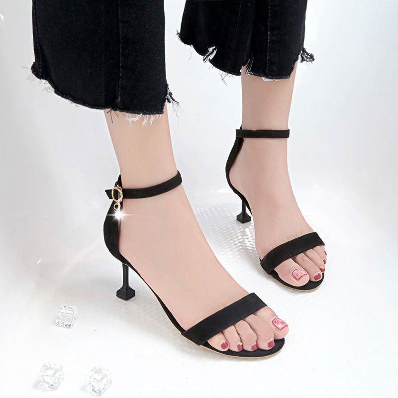Ad s women's 21 summer new black open toe buckle stto all-match net red fairy style high heels C427△☃