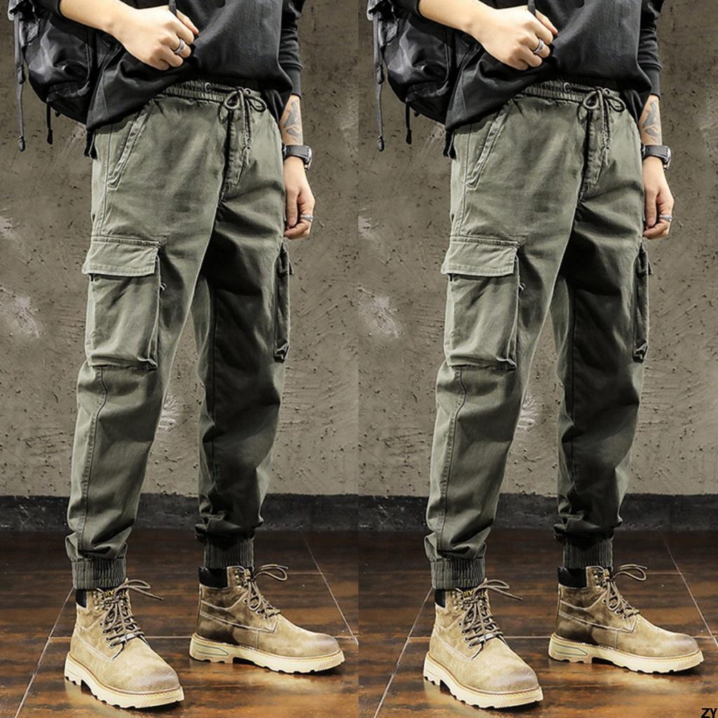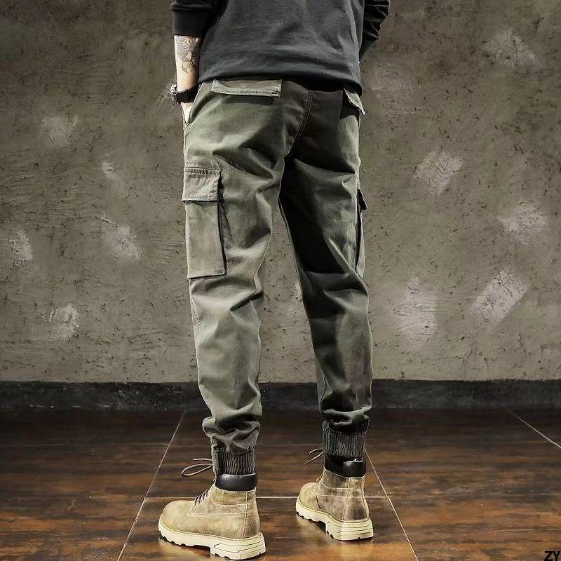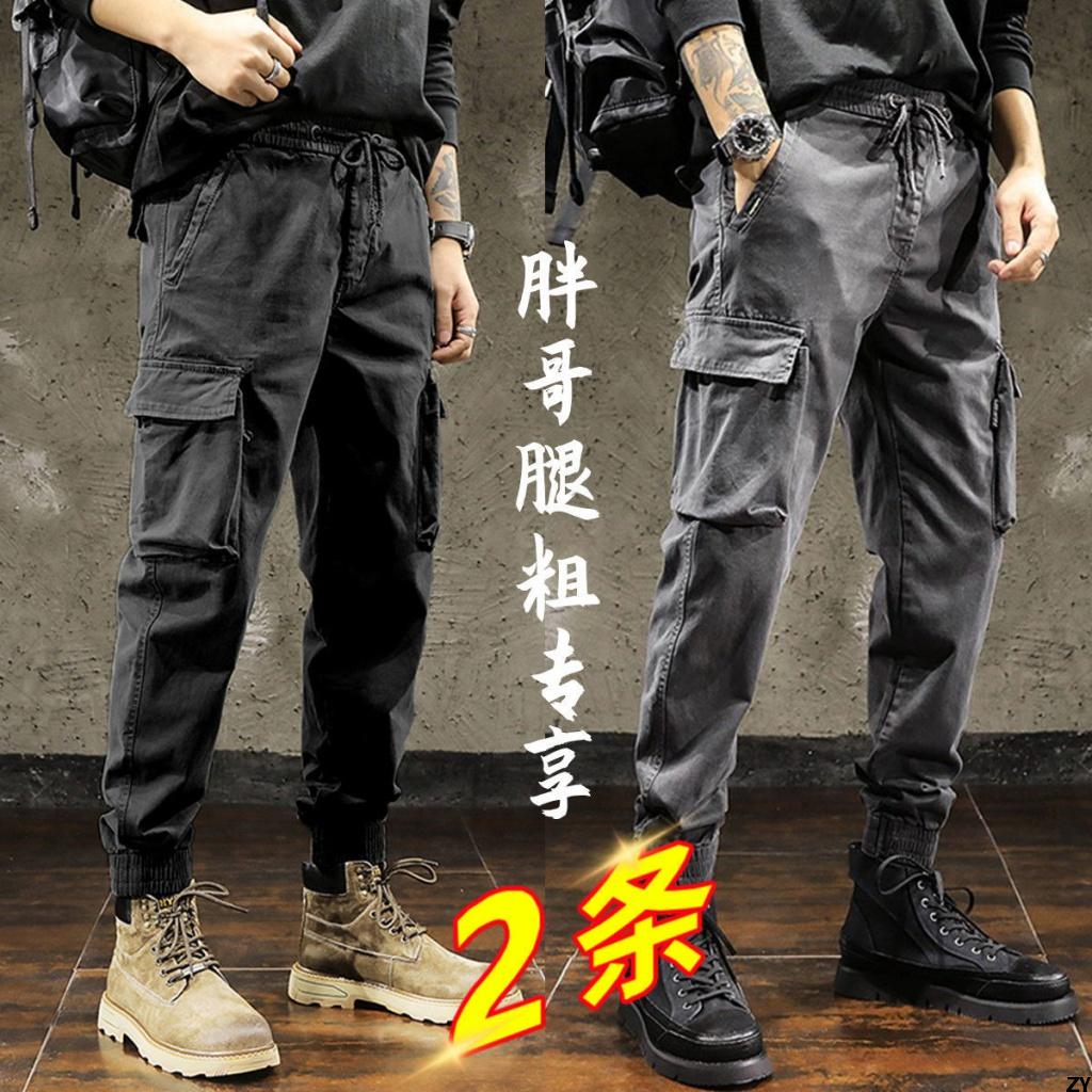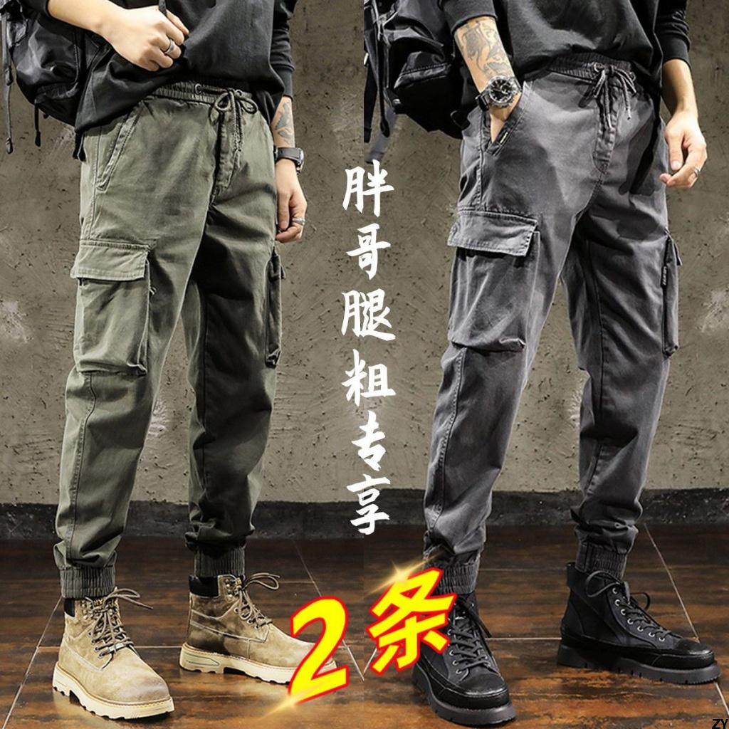 Wear-Resistant Fashion nd Multi-Pocket Hong Kong Style Pants Sports Pants Men's plus Size Workwear Casual Pants Fat Brother Ankle-Tied Loose