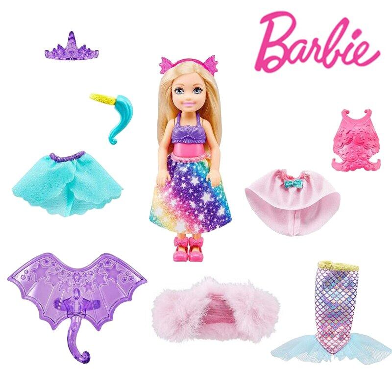 Original Barbie Model GTF40 Dreamtopia Chelsea Mermaid Pop With Accessories Make-Up Toys Mirror House Toys Girls Birthday Gifts