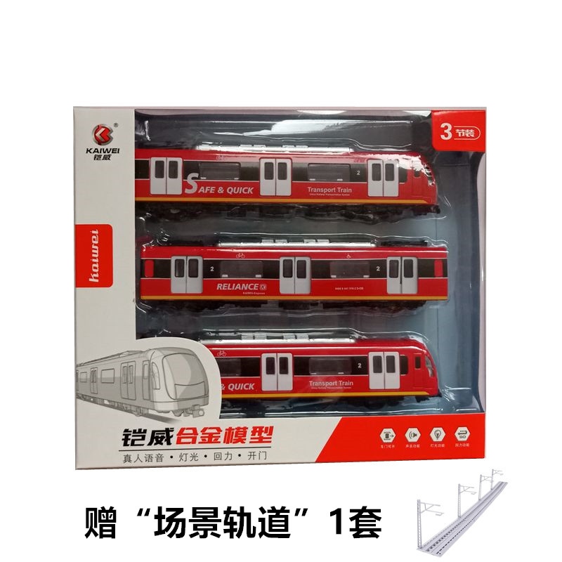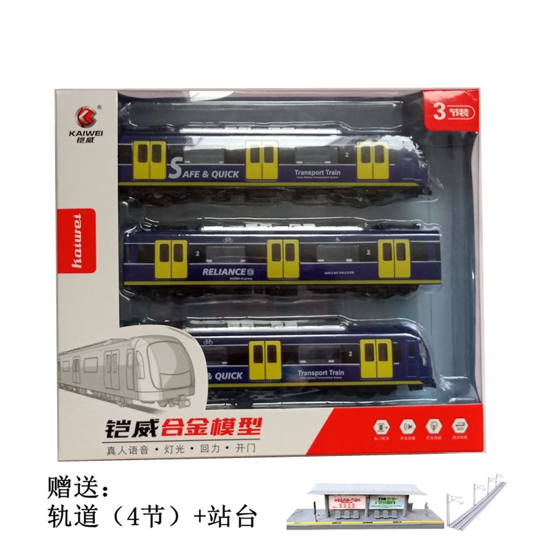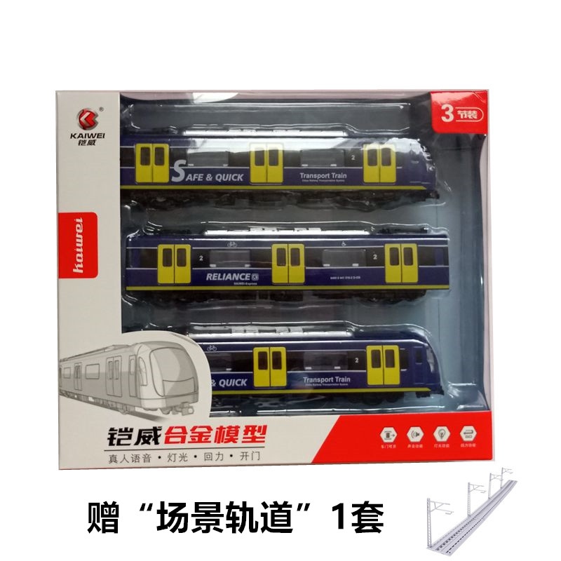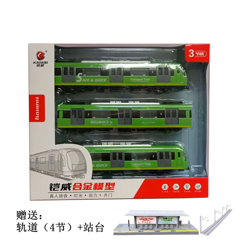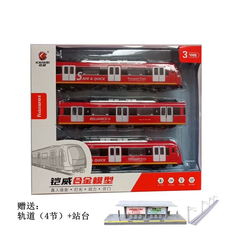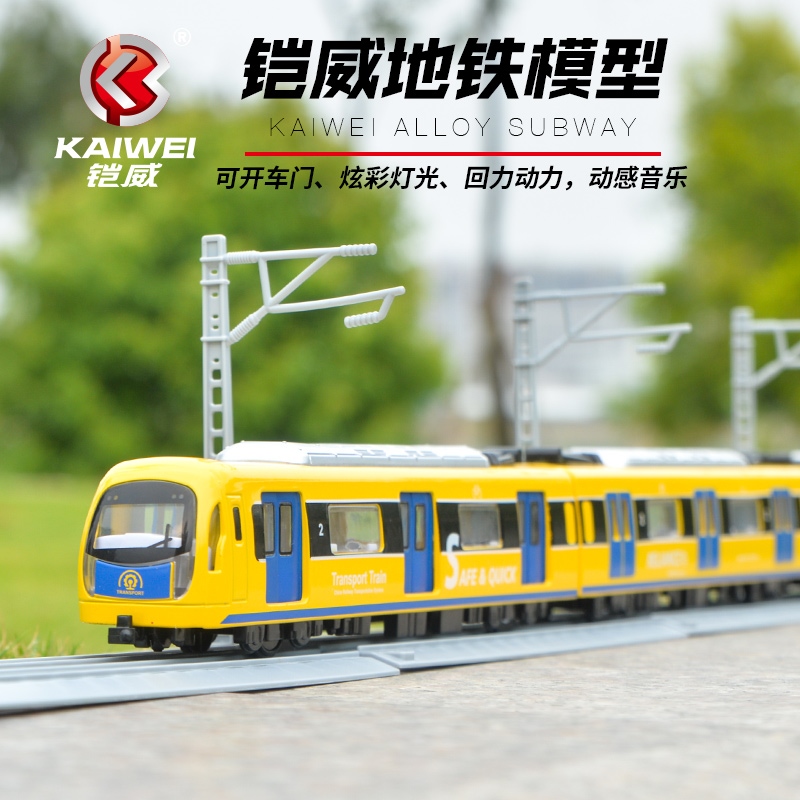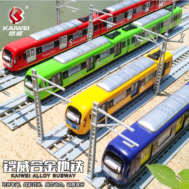 Kaiwei simulation alloy model urban rail transit subway high-speed train toy pull back sound and light can open the door
