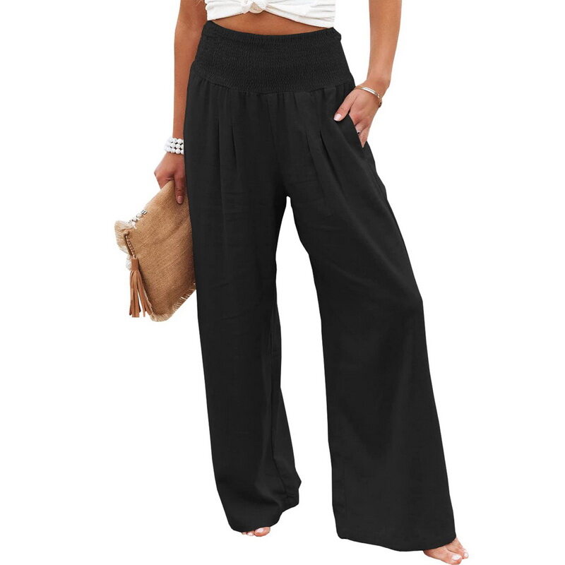 Features:Women's Solid Color Casual Style Versatile Loose Mid Waist Pants