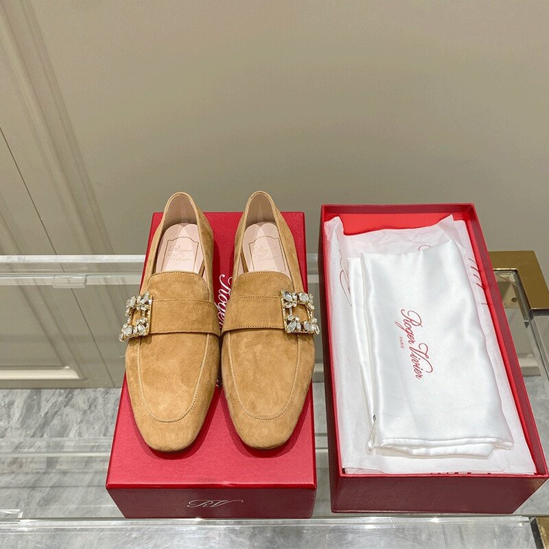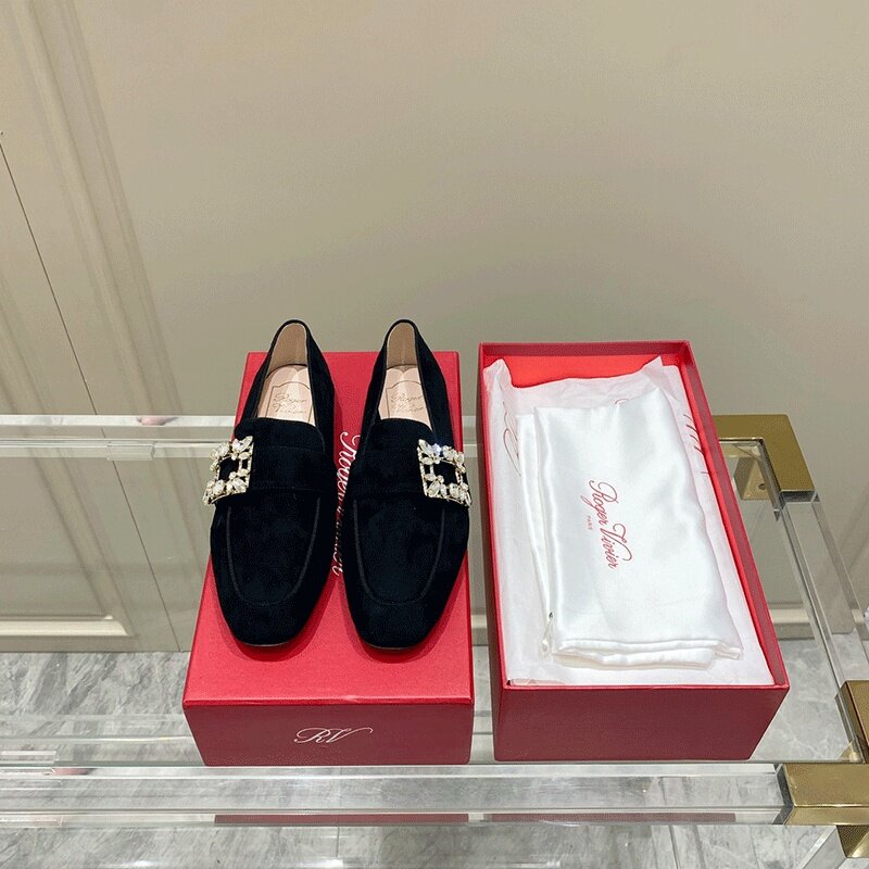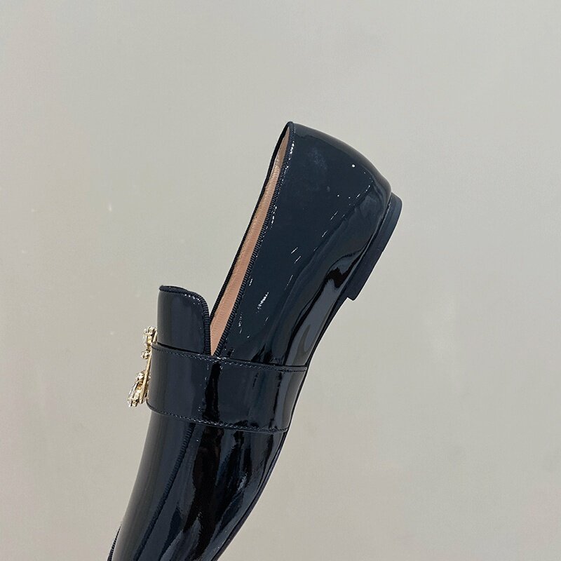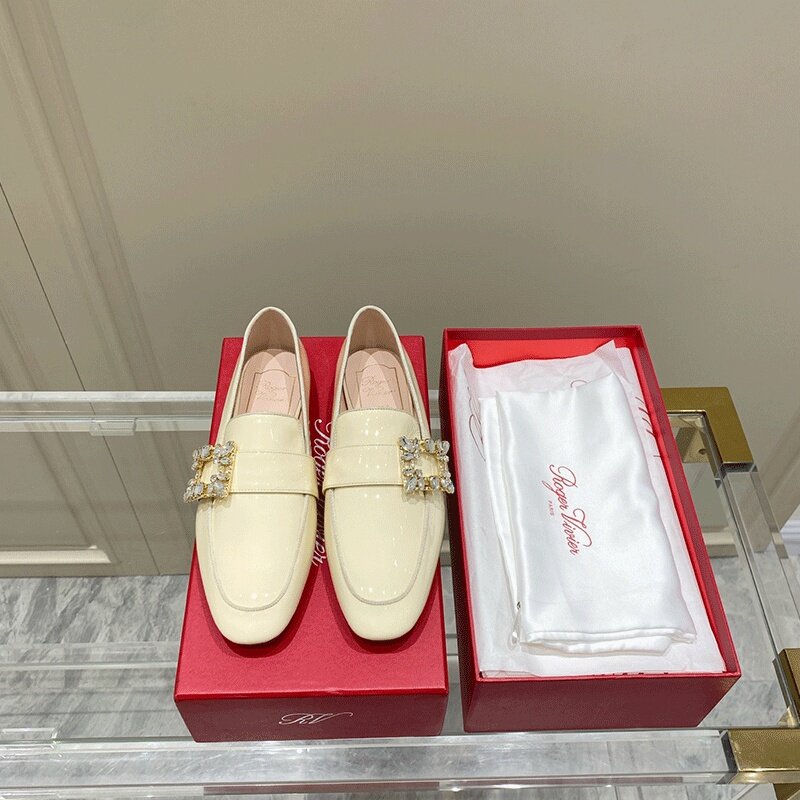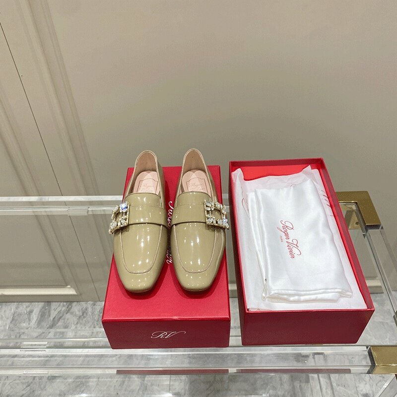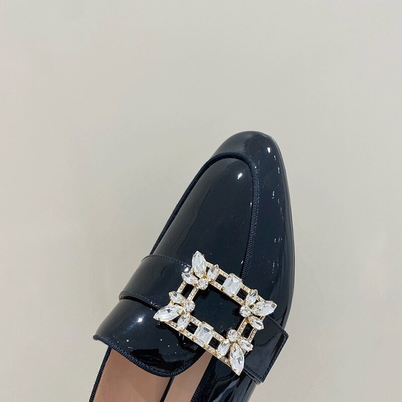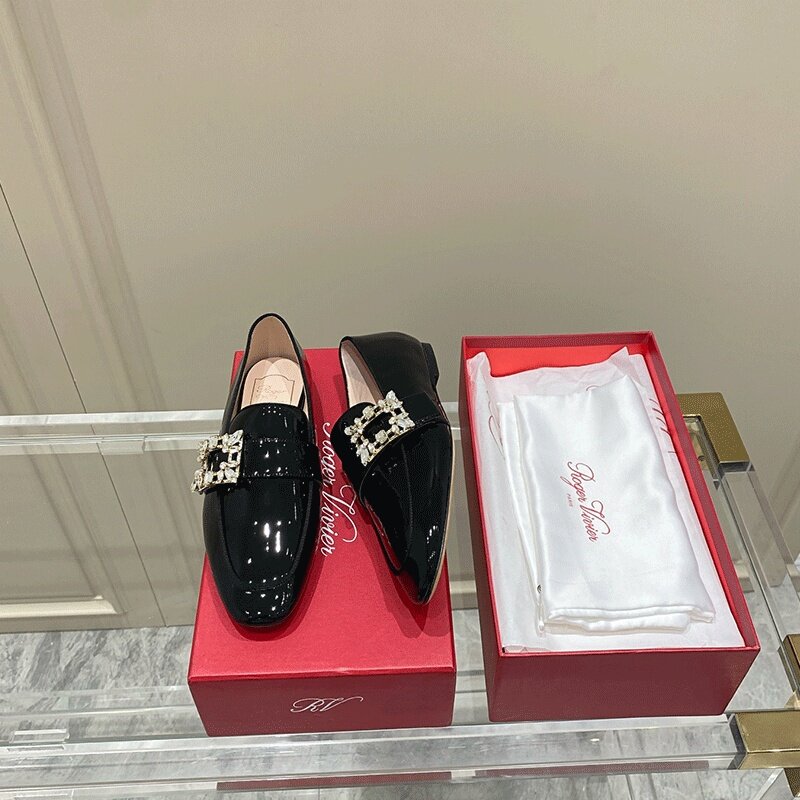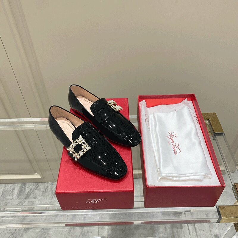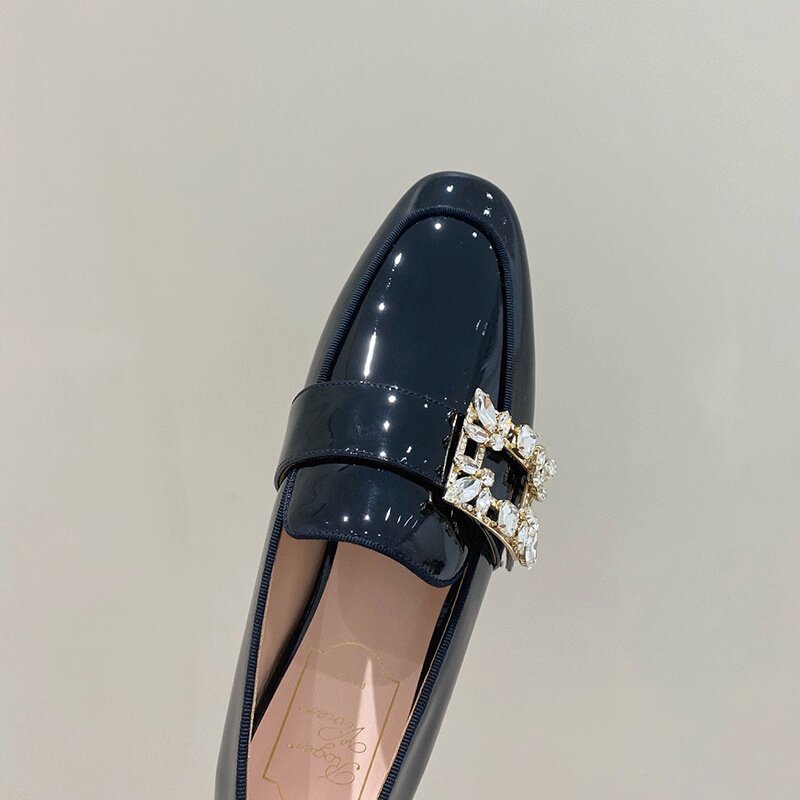 Roger vivierˉSide-drilled Patent-leather Loafers Cowhide Women's Classic Casual Shoes