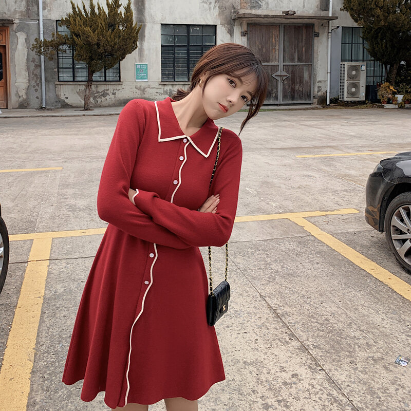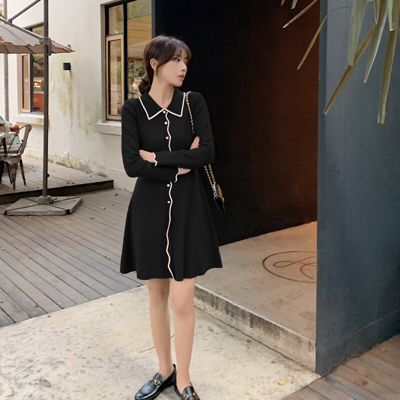 Special Offer Is Not Refundable ~ Only Black ~ Simple Lapel Button Knit Dress