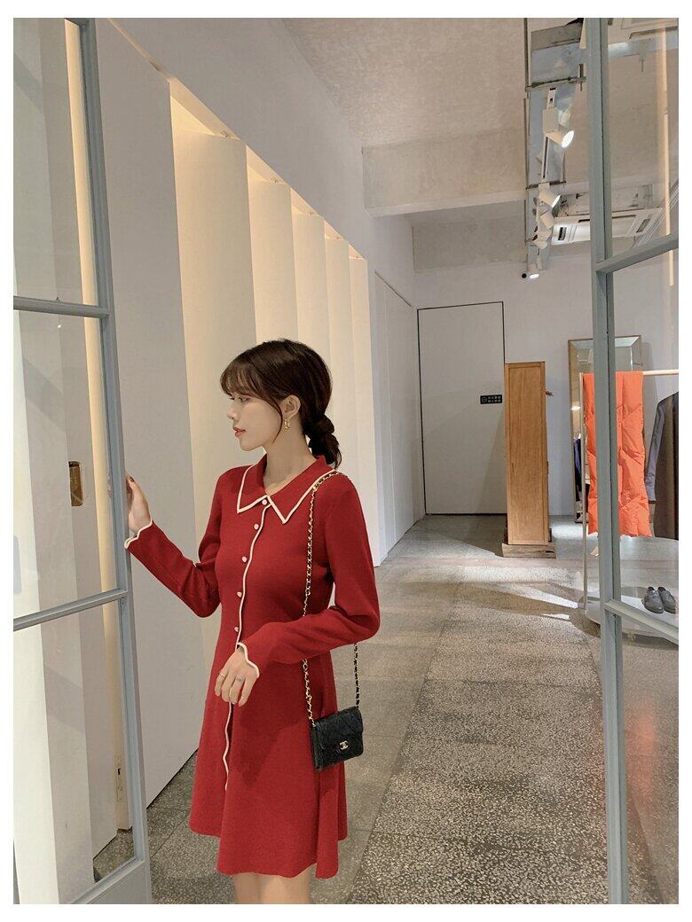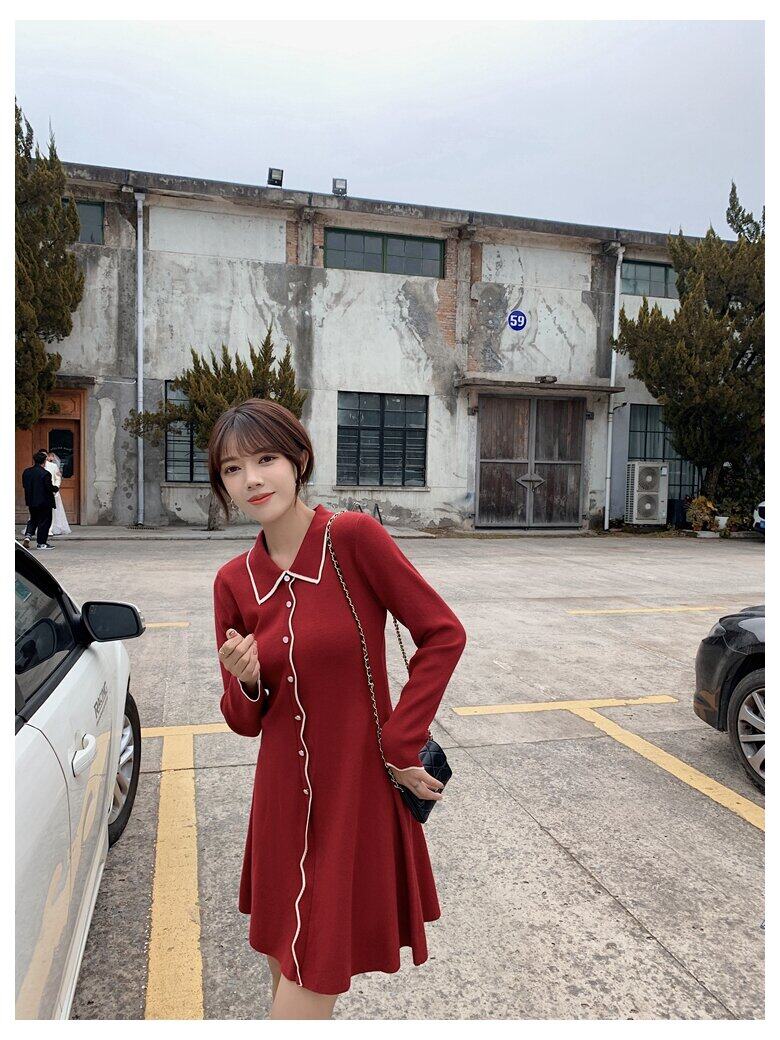 Special Offer Is Not Refundable ~ Only Black ~ Simple Lapel Button Knit Dress