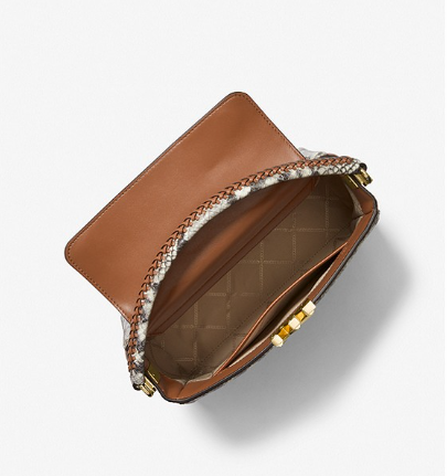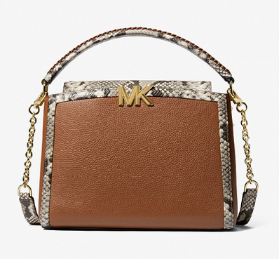 Pre-order: MICHAEL KORS Karlie Medium Pebbled and Snake Embossed Leather Satchel In Luggage 30F2GCDS2L