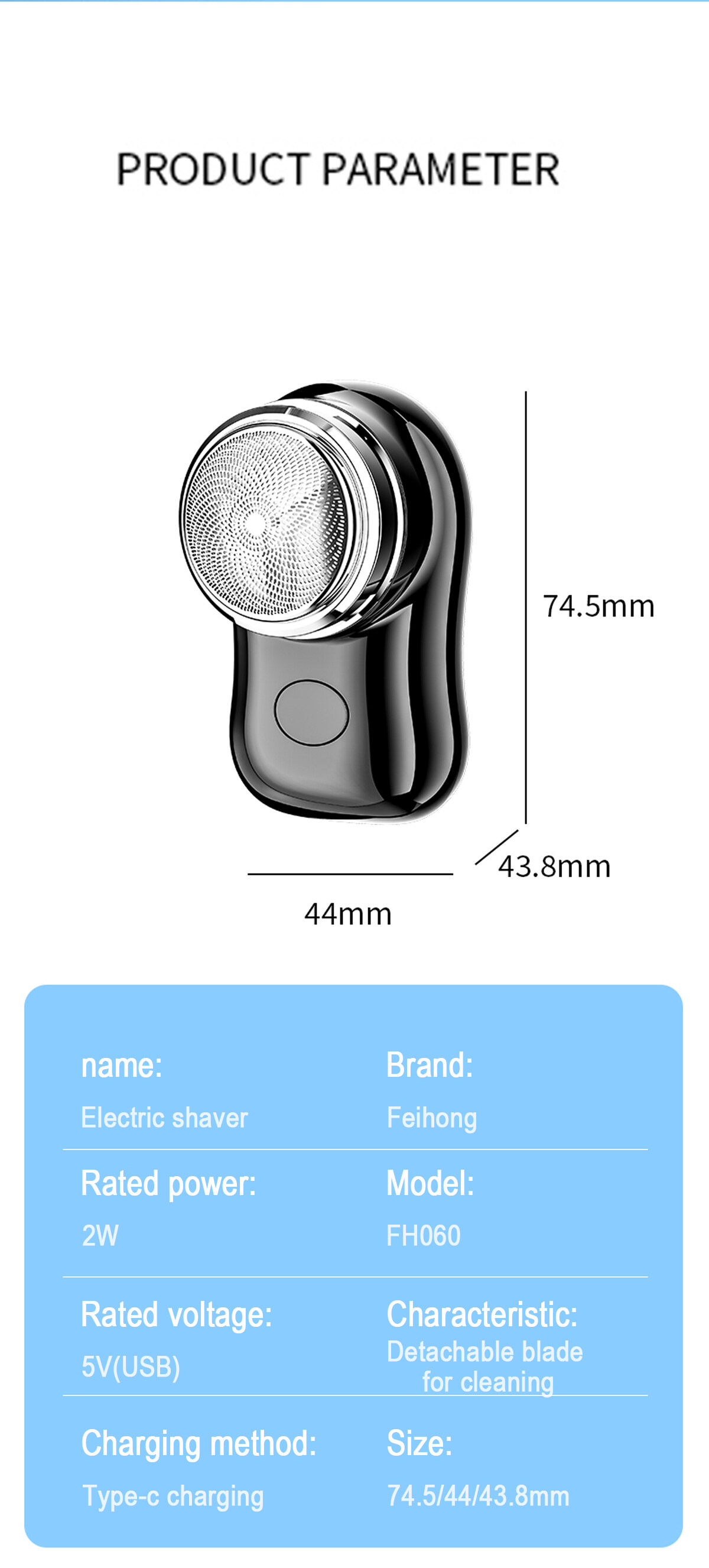 Electric Mini Shaver for Men Portable Men's Shaver Type-C Rechargeable 360 ° Shaving Travel Compact Pocket Razor Shaver