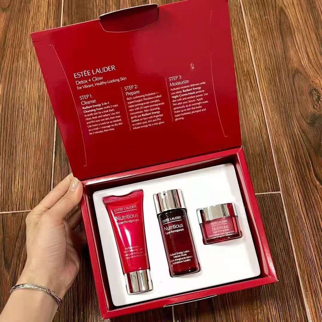 Estee Lauder Red Pomegranate Three-Piece Set Medium Sample Cleanser Cream Moisturizing Antioxidant