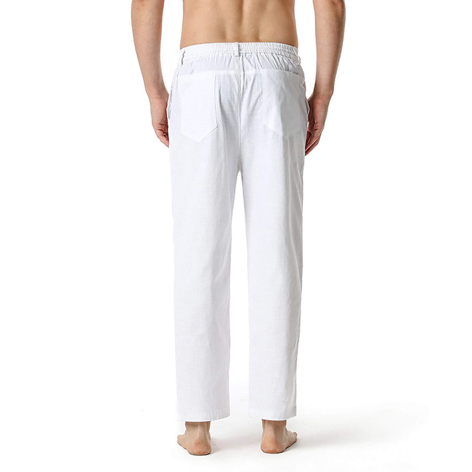 Men's Cotton-Linen Loose Casual Lightweight Elastic Waist Pants Home Pants