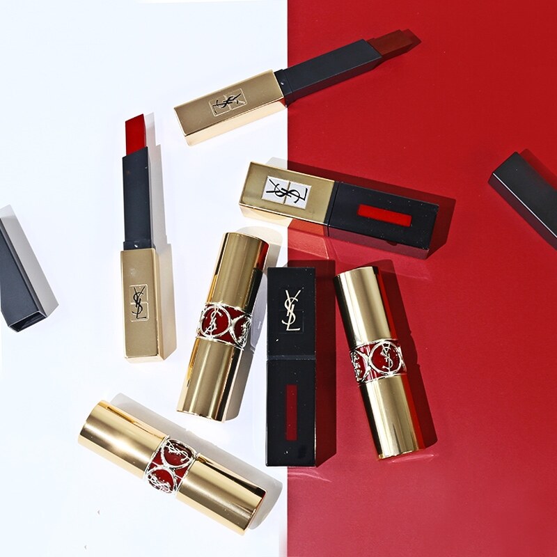 YSL Saint Laurent round tube lipstick / embossed 1971 small gold bar No. 21 No. 23 No. 1966 small black bar 302307 314