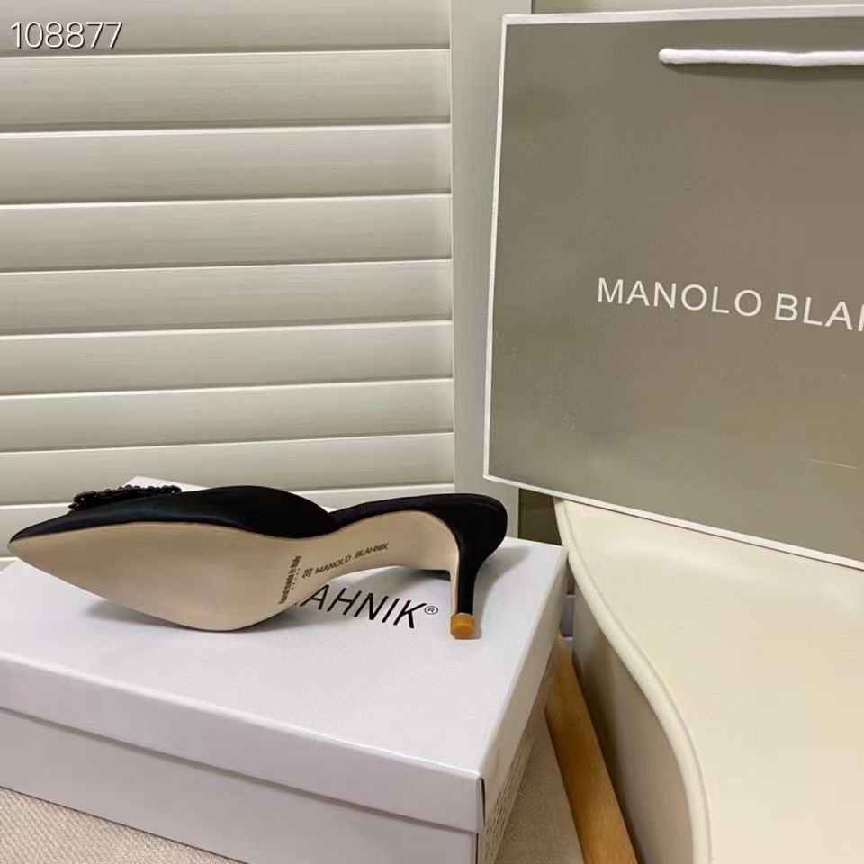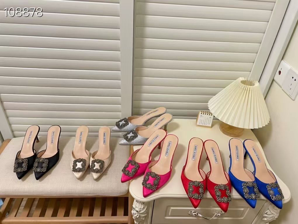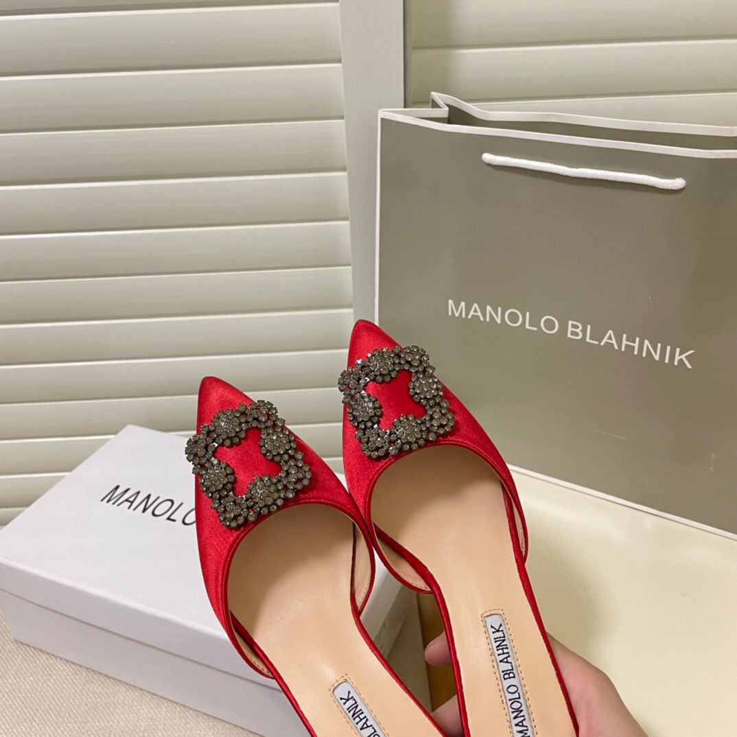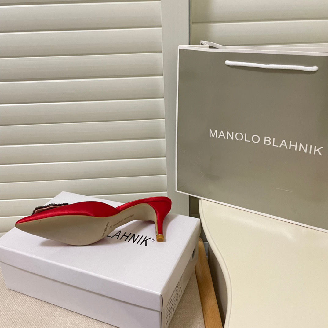 2023 Summer and Autumn New manolo blahnikˉDiamond Slippers European and American Fashion Pointed Toe Square Buckle High Heel Half Slippers