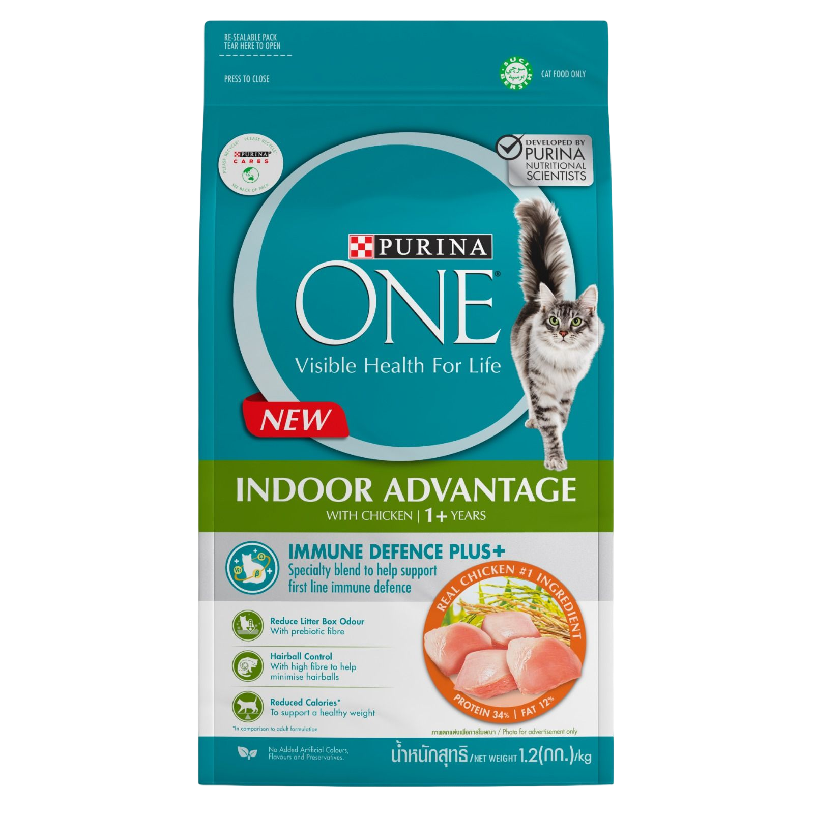 1)PURINA ONE® Indoor Advantage with Immune Defence Plus+ has been specially formulated for cats who tend to spend more time indoors/inside. It also contains a specially formulated blend of Vitamins C & E, Omega 3 & 6 and beta glucans, to help support your cat’s natural defences from the inside out. ​
