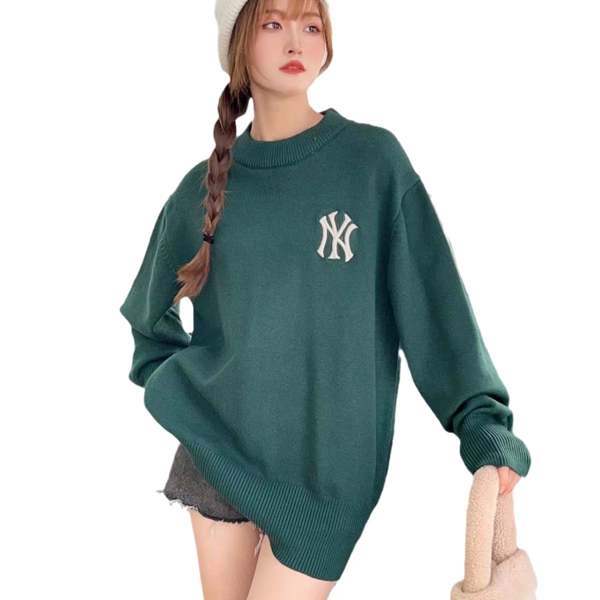 South Korea MLB Autumn and Winter New R Presbyopic Full Print NY Casual Loose Men and Women Couple Long-Sleeved Sweater