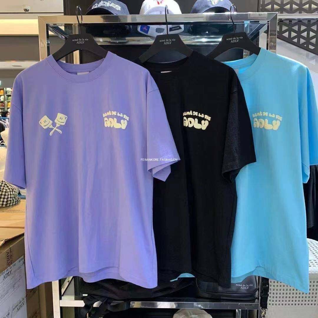 [acme De La Vie] Adlv Round Neck Short Sleeve Men's and Women's Couples Summer New Cartoon Rice Set Pattern Printed Loose Casual T-shirt