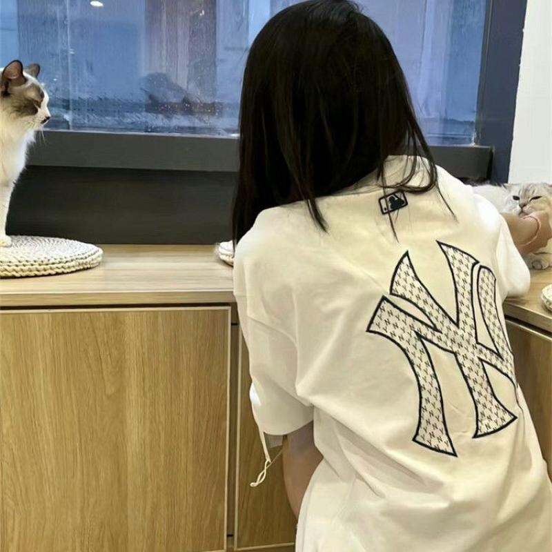 MLB/Trendy NY Yankees Embroider Big Logo University Style Casual Pure Cotton Men's and Women's Couple Loose Short Sleeve T-shirt