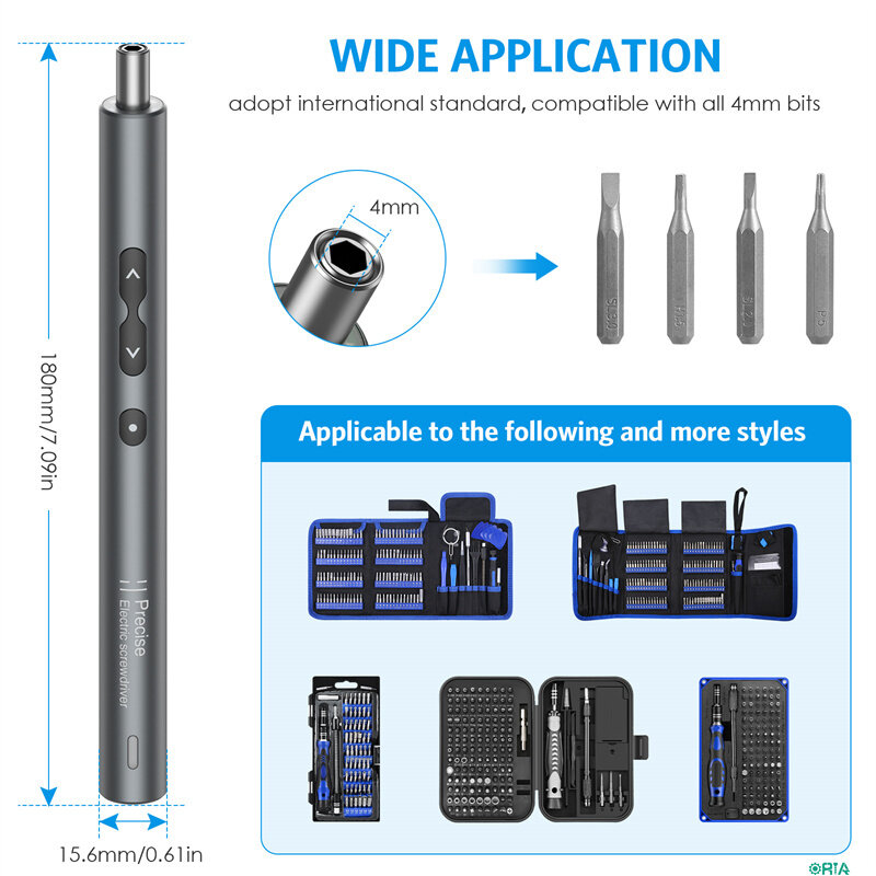 Note: The Electric Screwdriver Handle can also be used with other ORIA screw driver set bits with 4mm diameter.